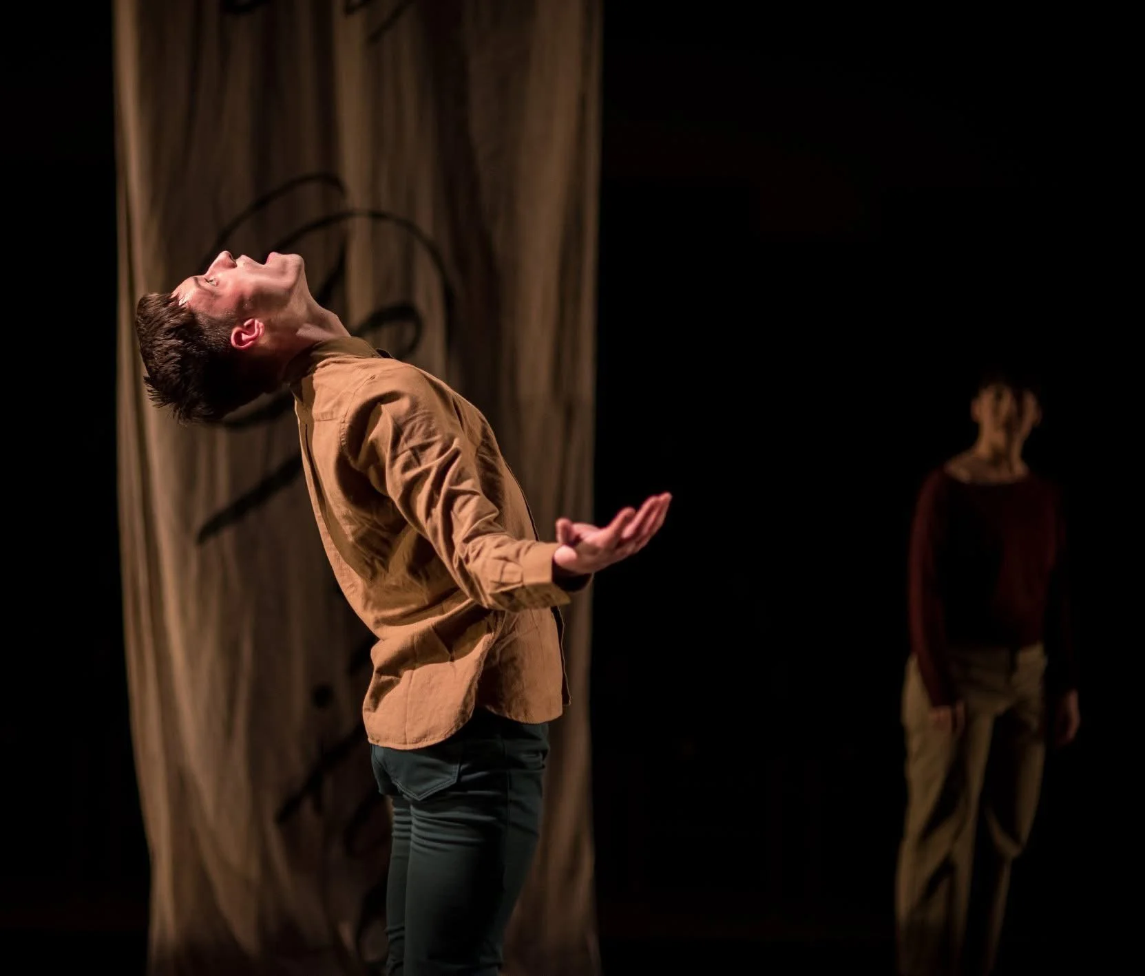 The 17-minute piece, created for RAWdance’s 15th anniversary home season, unravels complex themes of immigration, segregation, marriage equality, gender-based equality, and more, through a multi-layered performance experience with five dancers. Spoken text is combined with a collage-style sound score of music blended with samples from news broadcasts to set the tone for the deeply powerful and personal work. Stark lighting design by Allen Willner highlights the scenic design by Chad Owens which features five banners of fabric carrying excerpts of the amendment draped overhead. The banners are gradually dropped or pulled down by the dancers throughout the work to transform the space and evoke a constant sense of shifting grounds.